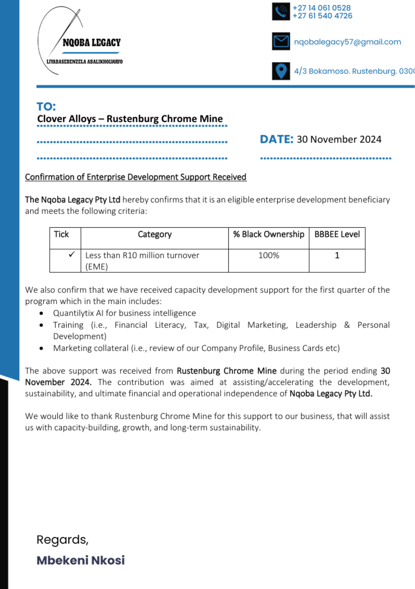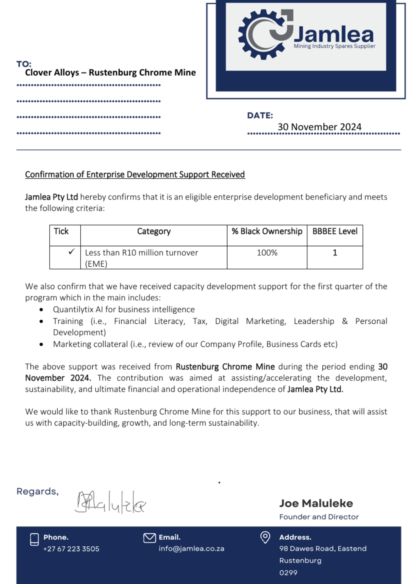 Celebrating the Successful Completion of the Rustenburg Chrome Mining (RCM) Enterprise and Supplier Development Programme (ESD) for 2024–2025